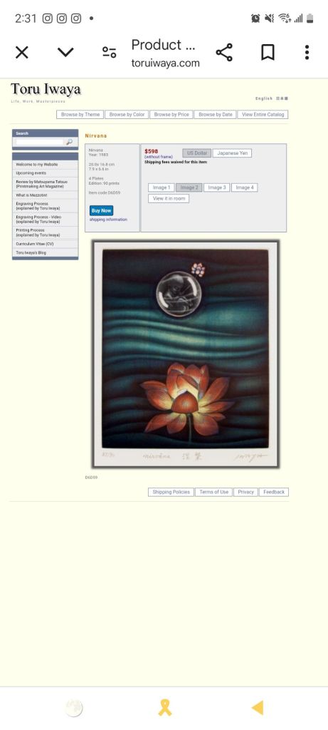 Hi, me I like Van Gogh especially! Some crazy dude out in France with a head full of misery painting away his own paradise kinda, WA! (My ex-girlfriend is Korean. She’s a conductor or something in Europe now and has husband and kids all that, very great! She’s on the web>>>>>Duk Kyung Chang-I’m really proud of her!!!!) <<<<<<<so hey! Great artist here as well! I like, oh Shit! PICASSO! Of course! I have many of his ink-work printed out and stapled to my forehead. Hihi, just joke, NO, I’ve got them Scotch taped on my condo walls. Bull fighting scenes, spectacular and fortifying they are, I must say, ya, WA! All the way, hey? Picasso, cubist paintings, he captured every single vibe that was emanating from his subjects, female I’m analyzing, minds. Just superb! Ya! I don’t know what to say, he did it perfect, AND, somewhat like Mozart writing an opera at four, he could paint like a Caravaggio when he was 13 I think the painting I’m talking about was dated at, a church scene, well anyways, OH! Met and hung out with the great Toru Iwaya in Montmartre at his apartment and eventually bought “Nirvana” which I no longer have. It’s a nice piece, I’ll post a pic! I would prefer now one of his No like mask mezzotints, just beautiful work.