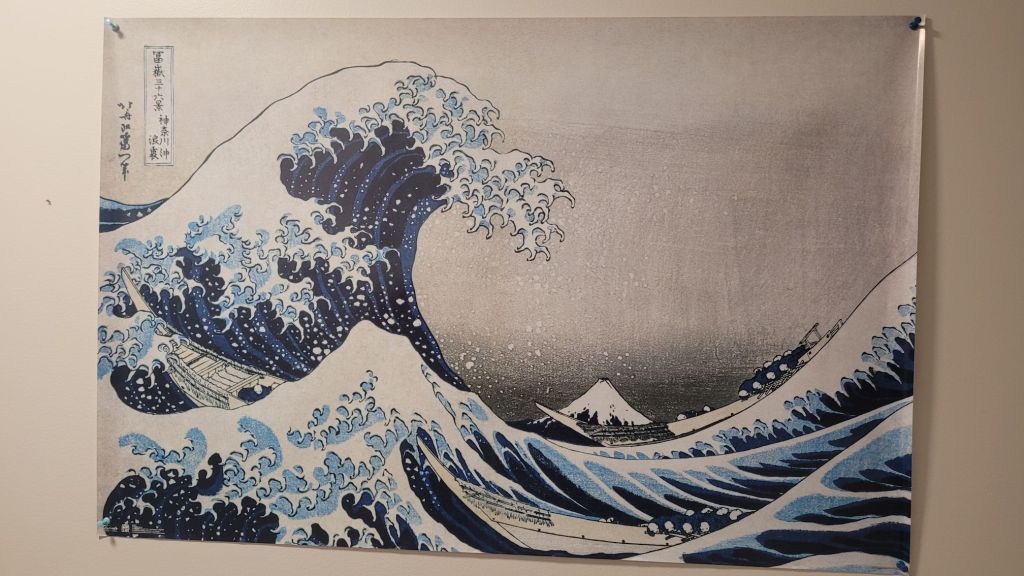 And Lo & Behold! Kanagawa Wave by Hokusai, just pinned up in my entrance in my condo!