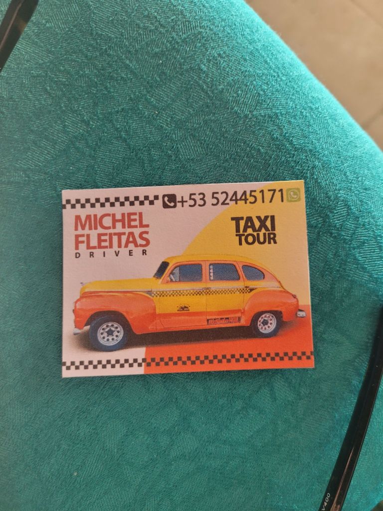 My friend Michel Fleitas, a cab driver here, took some awesome pics of me behind the wheel of his old classy American car! Amazing guy! Here’s his card if anyone is ever in Cuba.